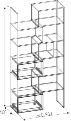 Стеллаж-трансформер - очень "гибкий" по ширине модуль. Его можно раздвинуть на необходимую ширину в пределах от 560 мм до 989 мм, таким образом занимая отведенное для него место в детской с точностью до миллиметра. Установите его как самостоятельный модуль или между шкафами, регулируя общую ширину шкафной группы. Также такой стеллаж отлично подойдет и для размещения в нише. С его помощью делать перестановку в комнате легко и просто! Дополнительно секции фиксируются между собой на межсекционные стяжки. Шкаф крепите к стене на подвесы! Ящики на шариковых направляющих полного выдвижения без лишней фурнитуры и удобно открываются за фасад.