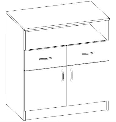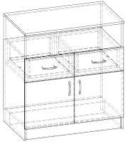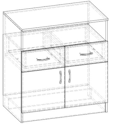 • Корпус, полки и фасады изготовлены из ЛДСП 16 мм с кромкой ПВХ 0,4 мм.