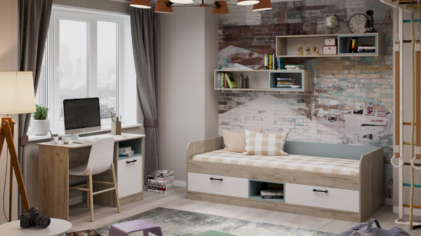 Цвет: Дуб Крафт серый/Белый/Серо-голубой