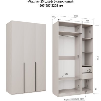 Трехстворчатый шкаф Чарли 25 (Аквилон)
