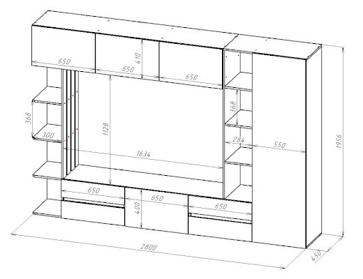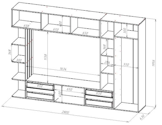 Длина ниши под телевизор, см 163
