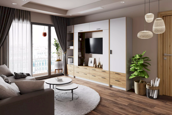 Комбинированный шкаф из новой коллекции Оттавия представлен в двух цветах на выбор – белый и антрацит. Шкаф отлично подойдет в гостиную для любого современного интерьера, как скандинавского, так и урбанистического.