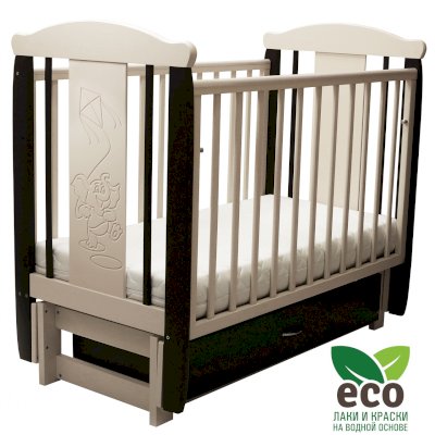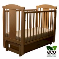Кроватка "Соня 05" имеет механизм качания продольный маятник. Механизм качания фиксируется. Возможен вариант кровати с ящиком.