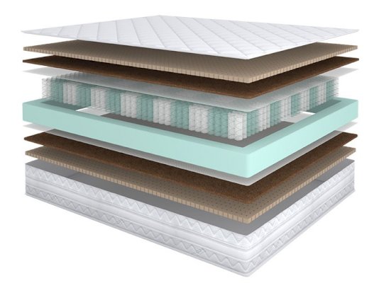 Наполнитель: Кокосовая койра, НПБ мультипокет 520 шт/кв.м., система усиления боковой поддержки, ППУ, перфорированный латекс Latex Perfo