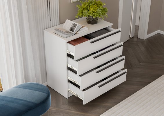 Комод Берген с выдвижными ящиками — отличный вариант для небольшой комнаты или прихожей.