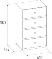 Поддержать порядок в спальне прекрасн поможет комод. На столешнице расставьте рамки с любимыми фотографиями или стильные интерьерные вещицы, вместительные ящики помогут организовать правильное хранение вещей. 4 вместительных ящика глубиной 35 см, высотой 14 см и шириной 53 см для размещения одежды и косметики. Ящики оснащены шариковыми направляющими полного выдвижения, что обеспечит высокую прочность и бесшумность при эксплуатации.