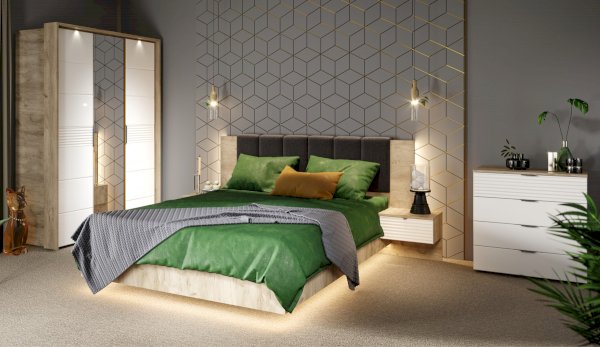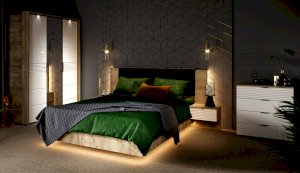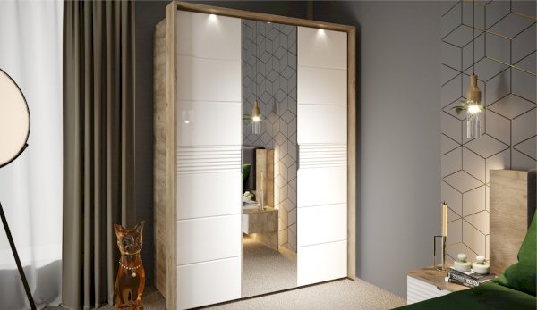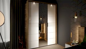 Современный распашной шкаф Джулия яркий представитель европейского минимализма. Это шкаф-конструктор, который позволяет выбрать подходящий вам размер, его наполнение и дизайн. На базе корпуса можно создать множество комбинаций: с зеркалами, с глухими глянцевыми фасадами, с порталом из ЛДСП 22мм или без него. Дополнительная опция – светодиодная подсветка монтируется в верхней части портала над каждой дверью. Шкаф выполнен из экологически безопасных надежных материалов. Декором белым глянцевым фасадам High Gloss служит фрезерованный рисунок «Волна» - подчеркивает зеркальный блеск, делает интерьер спальни особенным и неповторимым. Торцевые ручки из хромированного металла - яркий акцент фасадов. Наполнение шкафа включает в себя вместительные полки и отделения со штангой, что позволяет создать систему для хранения вещей различного назначения. Идеально компонуются со всеми модулями системы Джулия.