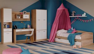 Система Стелс - это комплексное решение для детей любого возраста, так как именно современный стиль наилучшим образом подстраивается под потребности и вкусы юного хозяина или хозяйки. Белые фасады в сочетании с древесным цветом светлого дуба способствуют активности, развитию и хорошему здоровью. Кроме этого, белый цвет делает комнату более светлой и просторной. Широкий выбор модулей позволяет грамотно организовать пространство ребенка, расставляя приоритеты в зависимости от возраста и увлечений. Все, что находится в детской комнате, должно быть максимально безопасным и экологичным, поэтому при создании серии мебели Стелс реализованы в полной мере «зеленые» принципы. Система Стелс изготовлена из высококачественных материалов.