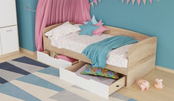 Кровать: ШхГхВ 2044х954х600 мм - спальное место 900х2000 мм (основание - настил ЛДСП)