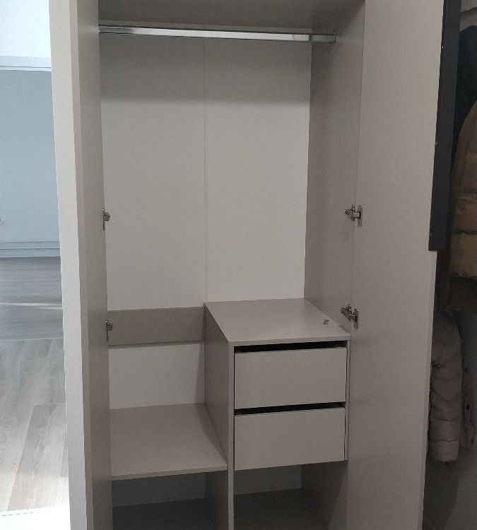 Шкаф великолепный! Мы не ожидали такого качества. Цвет светло-серый (я волновалась, если будет больше бежевый, но всё ок). Инструкция понятная, комплектация для сборки полная. Материалы качественные, доводчики имеются. Вместительный, несмотря на размеры . Очень рады, что купили этот шкаф!