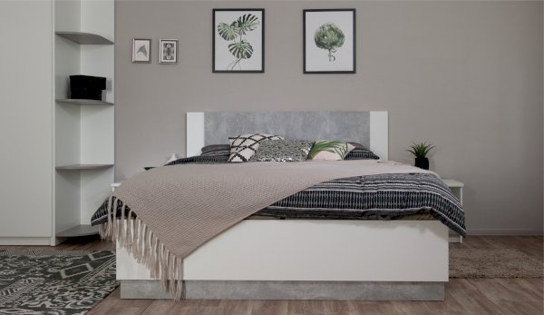 Кровать Аврора - акцент спальни, выполнена в стиле минимализм, удобна и просторна, можно с комфортом проводить свободное время. Изголовье - комбинированное, с декоративной вставкой контрастного цвета по центру. Кровать с надежным ортопедическим основанием с подъемным механизмом на газлифтах, внутри расположены две секции для хранения подушек, одеяла и любых других вещей.
