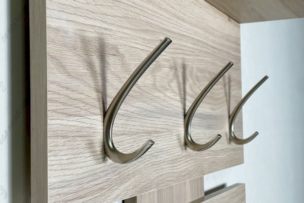 Замечательный вариант для маленькой прихожей – это вешалка «Реал 2». На ней есть металлические крючки для одежды и сумок, а также полка для головных уборов. Отлично сочетается с модулями из серии "Лайк".