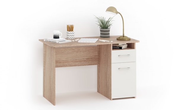 Стол письменный – удобное рабочее место для студента, школьника, отличное решение для кабинета с интерьером в скандинавском стиле. В столах системы Гарвард мягкие, удобные для опирающихся рук края, с кромкой в 2мм, а также, скруглённые углы столешницы. Корпус выполнен в теплом древесном цвете светлого дуба с приятной на ощупь фактурой, фасады - белые матовые. Нейтральные оттенки мебели позволяют легко вписаться уже в готовый интерьер.