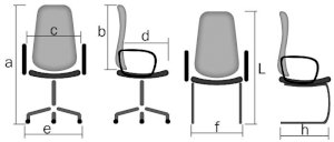 вариант исполнения а.высота b.спинка c.ширина d.глубина e.диаметр крест. L.высота f.ширина h.глубина