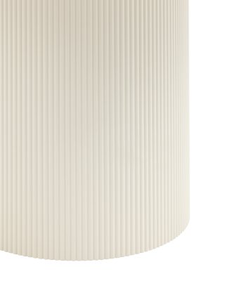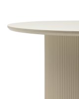 Столешница выполнена из прочного и долговечного МДФ. Светлая поверхность столешницы гармонично сочетается с массивной основой. Простая круглая форма стола позволит легко вписать его в современный интерьер, стол украсит кухню, гостиную или современное кафе, ресторан. Опорное плиссированное основание стола в лаконичном дизайне надёжно удерживает всю конструкцию и дополняют монолитный образ.
