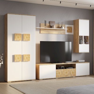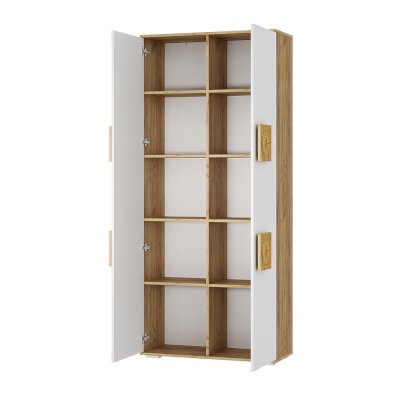 Функциональный и стильный шкаф из коллекции «Тиволи» - это универсальный выбор для вашей гостиной и личной комнаты. Контрастное сочетание белого и древесного привлекает внимание и создает акцент в интерьере. Десять вместительных полок, скрытых за классическими дверцами, подойдут для хранения одежды, книг, фотоальбомов.