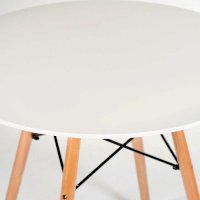 Стильный обеденный стол CINDY NEXT из коллекции Modern создан в стиле работ американских дизайнеров супругов Имз. В своих работах они стремились соединить два основных принципа: простоту и функциональность. Эти принципы удачно сочетает в себе стол CINDY NEXT. Он лаконичен, сдержан, легок и естественен. Визуальная легкость позволяет ему стать идеальным решением даже для небольшого помещения. Круглая форма стола, за которым могут комфортно разместиться четыре человека, располагает к приятному и непринужденному общению. Оригинальные ножки из массива бука и классическое металлическое крепление выгодно выделяют его среди привычной мебели. Надежная столешница из мдф, покрашенная в белый цвет, не требует сложного ухода, выдержит воздействие жидкостей и тепла. Эта элегантная и комфортная модель станет любимым местом отдыха в вашем доме. Стол отлично подойдёт для гостиной, для кухни, для дачи, для ресторана или для кафе. Стол очень прост в сборке, инструкция по сборке прилагается.