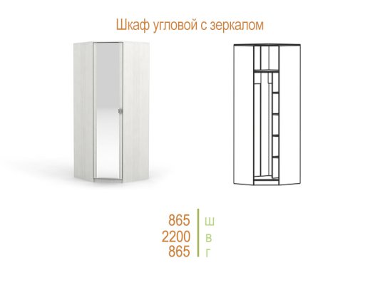 Шкаф угловой с зеркальной дверью