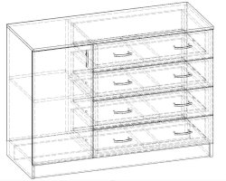• Корпус, полки и фасады изготовлены из ЛДСП 16 мм с кромкой ПВХ 0,4 мм.