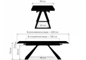 Длина разложенного столика, мм 2200