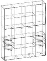 Применение задней стенки из ЛДСП (в ячейках с ящиками и фасадами) позволяет использовать данный стеллаж для зонирования пространства (чтобы предотвратить опрокидывание, необходимо обеспечить крепление стеллажа к стене).