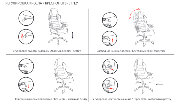 Тип механизма качания: "синхронный" качание с синхронным отклонением сидения и спинки 1:2 или 1:3